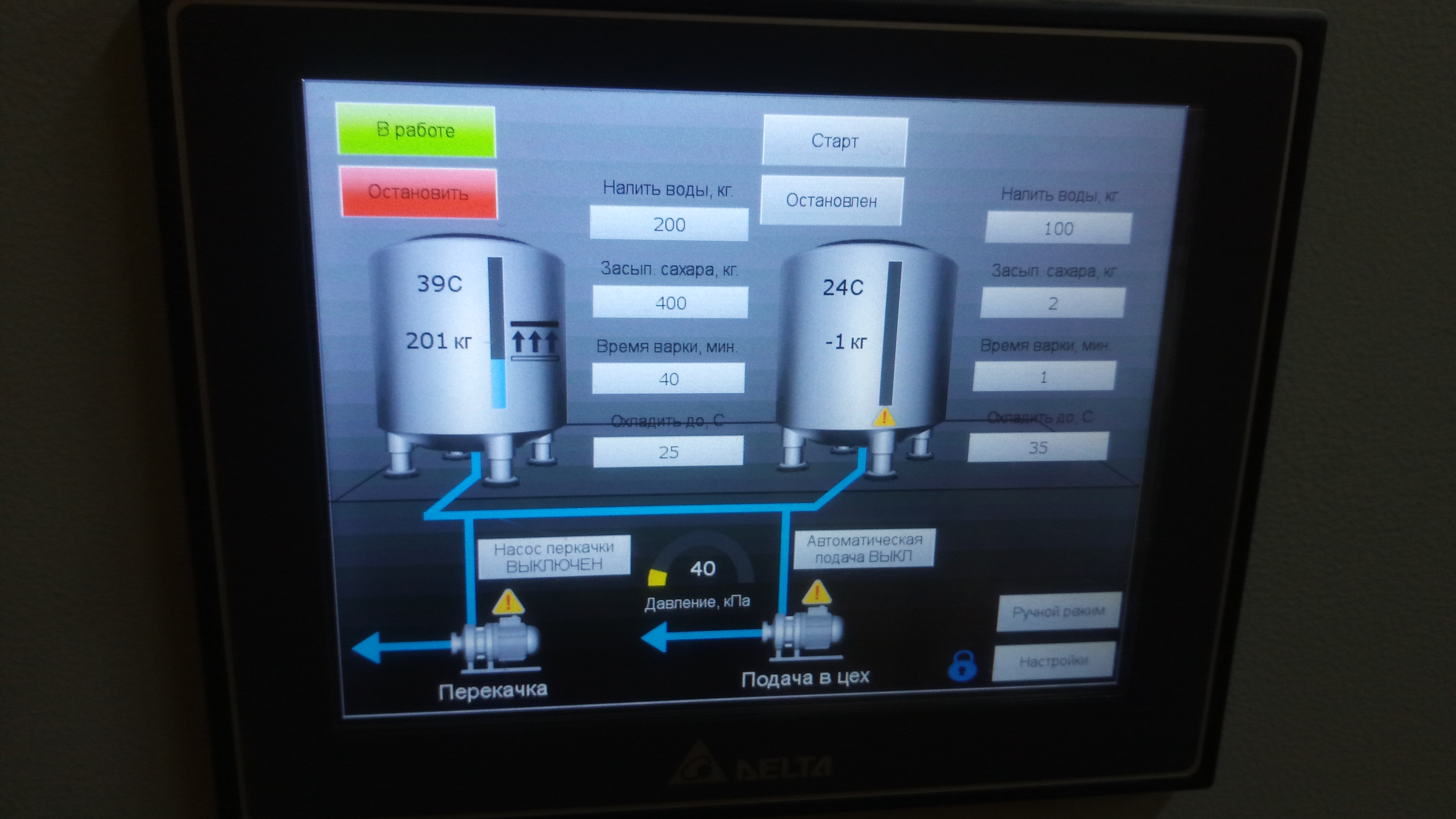 Автоматизировать работу двух сироповарочных котлов и исключить человеческий фактор в процессе приготовления сиропа.